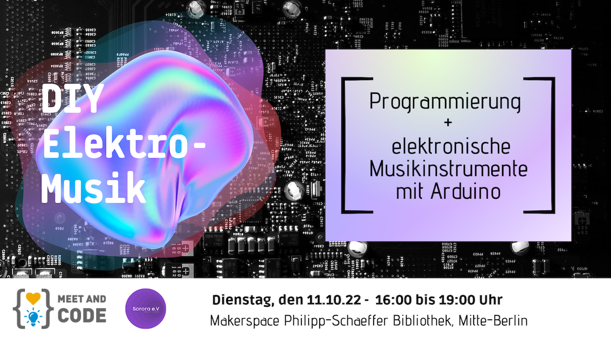 Dieser Workshop richtete sich an junge Menschen zwischen 13 und 24 Jahren, die sich für Programmierung, DIY-Projektentwicklung und elektronische Musik interessieren. Der Workshop fand im Rahmen der Code Week 2022 im Makerspace der Philipp-Schaeffer-Bibliothek in Mitte statt.