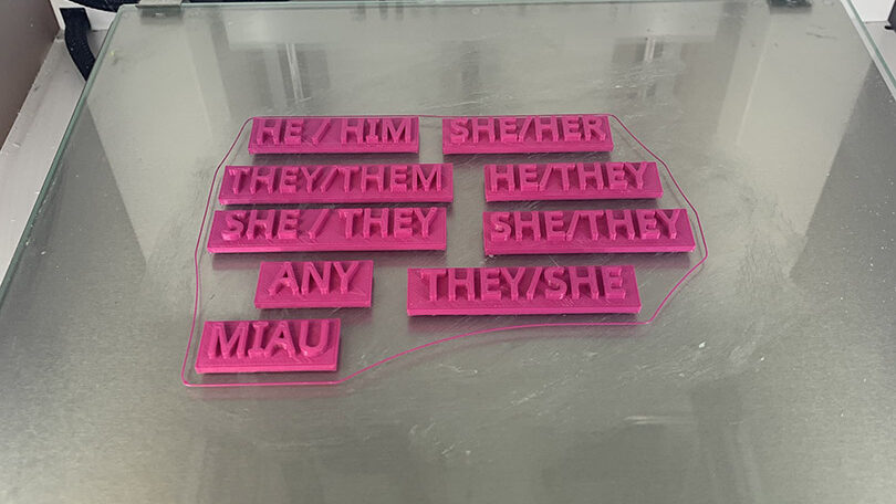Der Workshop wurde von zwei Teile gegliedert. Der erste Teil umfasste eine Vorstellung der Teilnehmer:innen und eine Reflexion über die korrekte Verwendung des Namens. Kein Deadname erforderlich! Im zweiten Teil wurden die Teilnehmer:innen aktiv, um ihre Kreationen zu entwerfen und zu drucken.